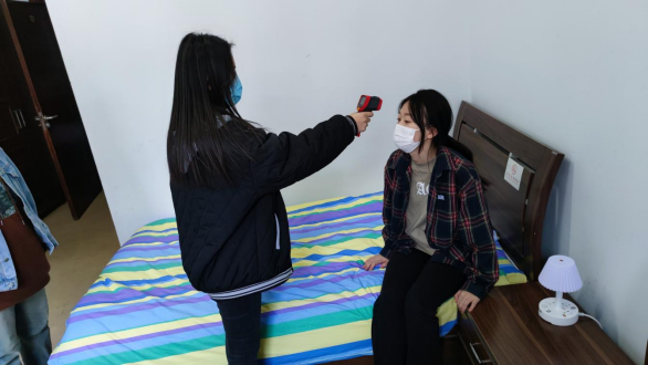 辅导员到达现场后,使用额温枪和水银体温计,对学生进行体温复测,复测体温超过37.5摄氏度。