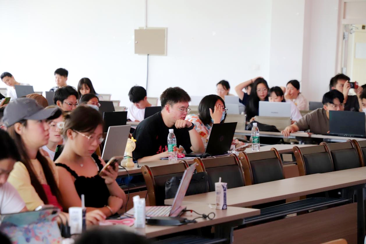 6月26日,由于场地安排,同学们中午没能休息,阳光洒在同学们的脸上,折射出的是青春的光彩。