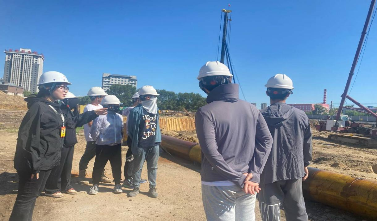 赵铭老师前往学校北区项目施工现场了解土木专升本(二年制)学生的工作内容、时间分配,关注学生的心理状态,强调专业实践的重要性,叮嘱学生必须把安全放在第一位。