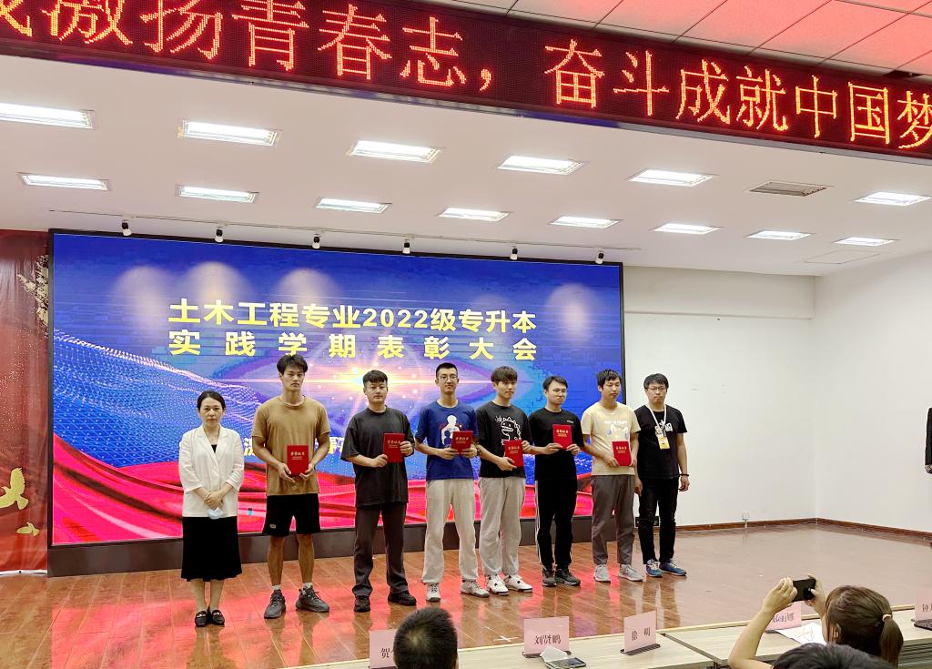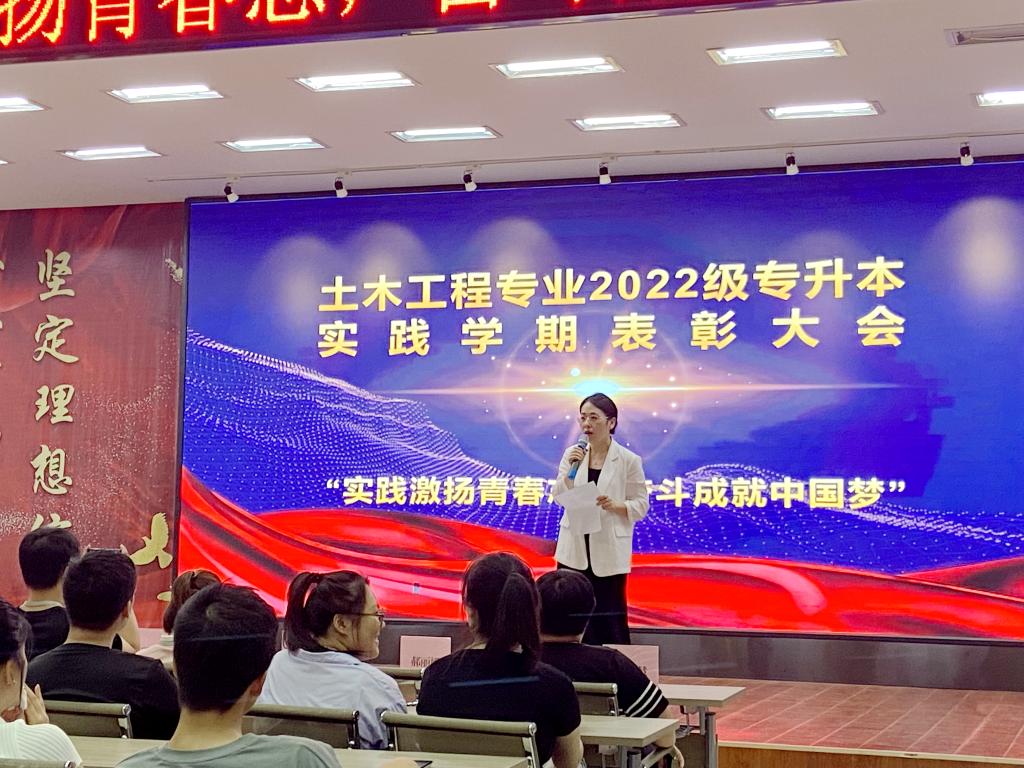 9月7日18时,建筑工程系2022级专升本专业实践学期总结表彰大会在2号教学区2508室举行。系党总支书记、副主任徐明,副书记、学生工作副主任刘贤鹏,教学副主任郝丽娜,土木工程专业负责人钟美慧、教师代表贺全德,以及全体2022级专升本全体学生、2023级专升本及普本学生代表参加。