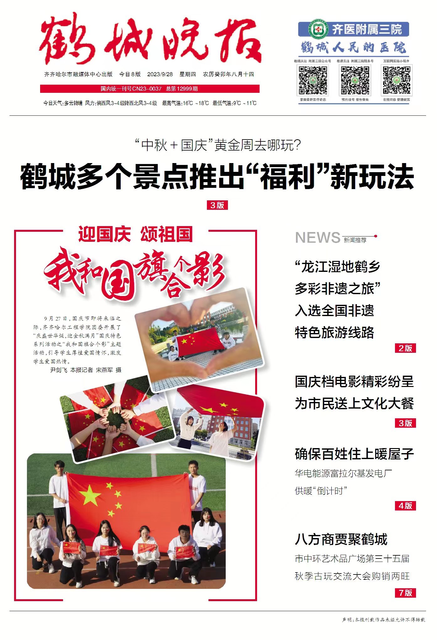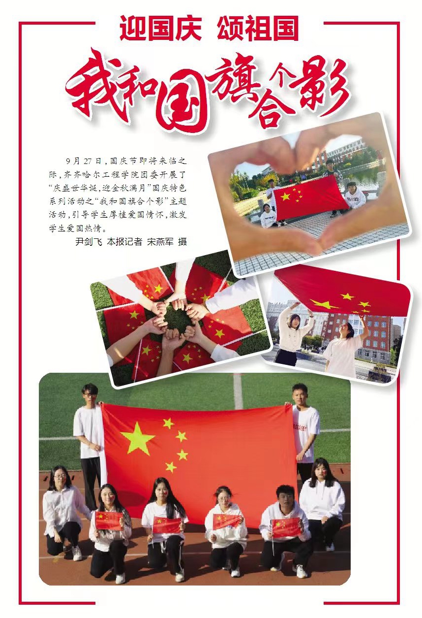 鹤城晚报头版图文报道学校“我和国旗合个影”活动