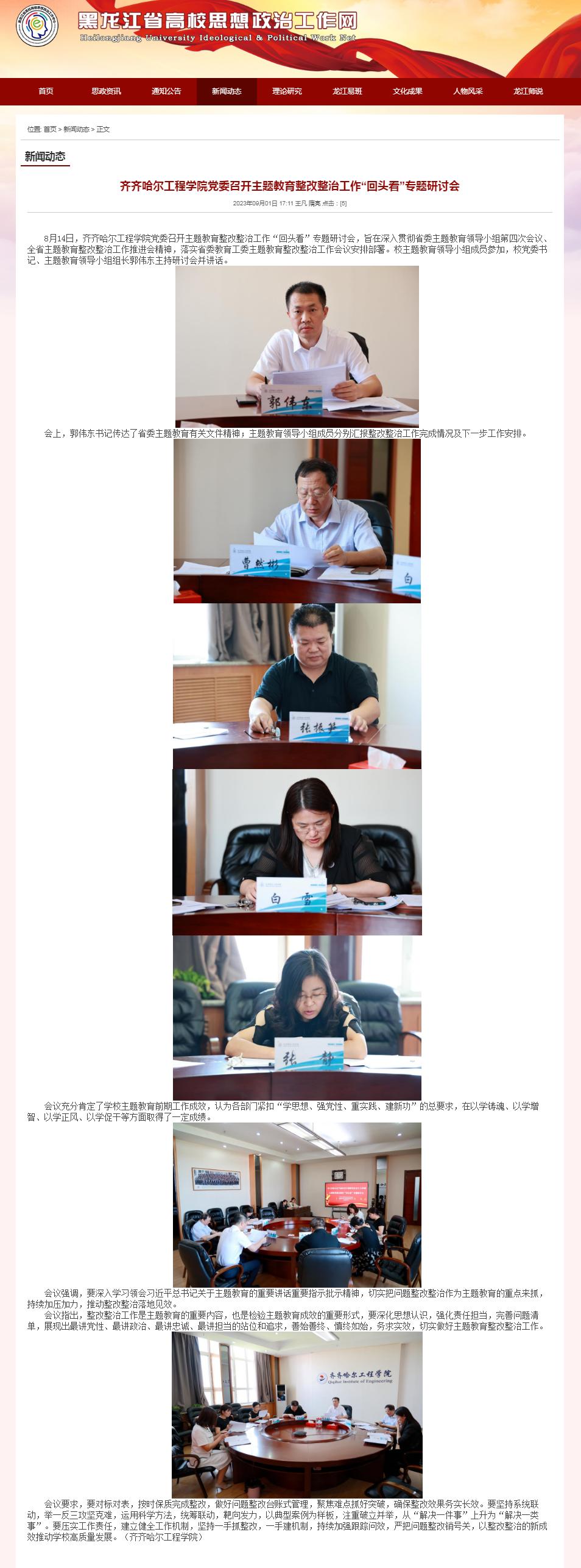 黑龙江省高校思想政治工作网:日韩一区二区A片免费观看党委召开主题教育整改整治工作“回头看”专题研讨会