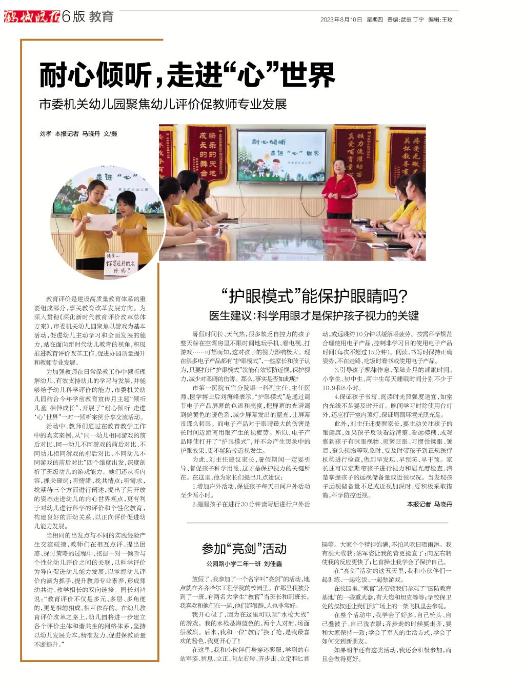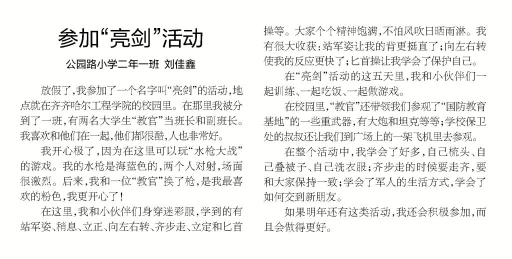 鹤城晚报发表子弟学校学生作文《参加“亮剑”活动》