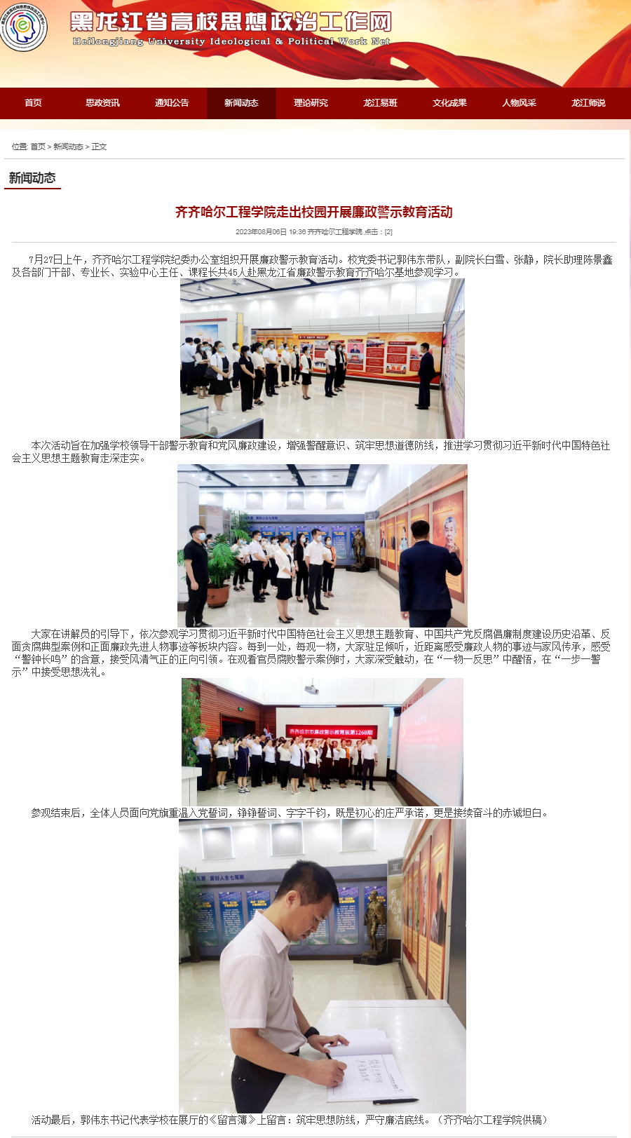 黑龙江省高校思想政治工作网:日韩一区二区A片免费观看走出校园开展廉政警示教育活动