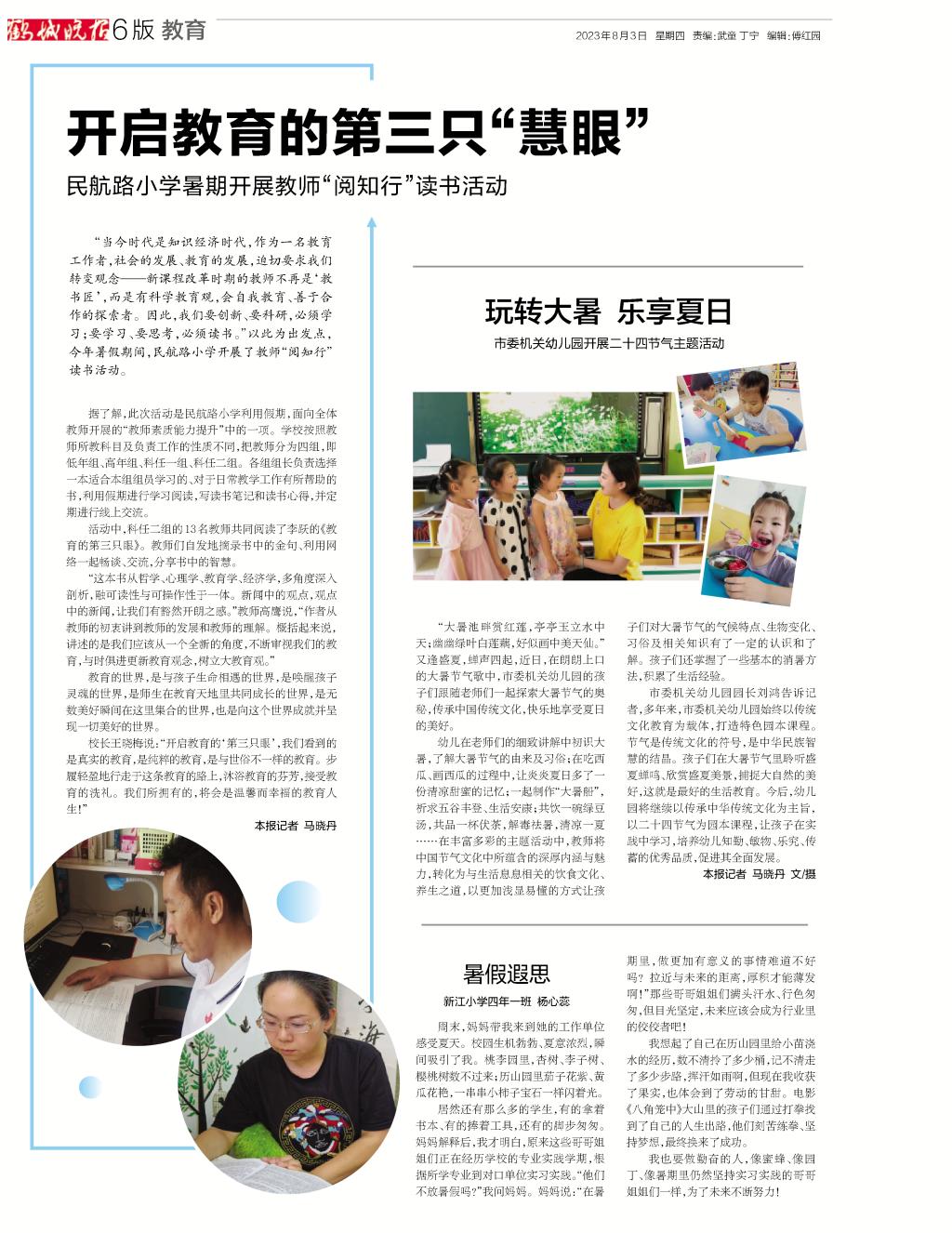 鹤城晚报发表子弟学校学生作文《暑假遐想》