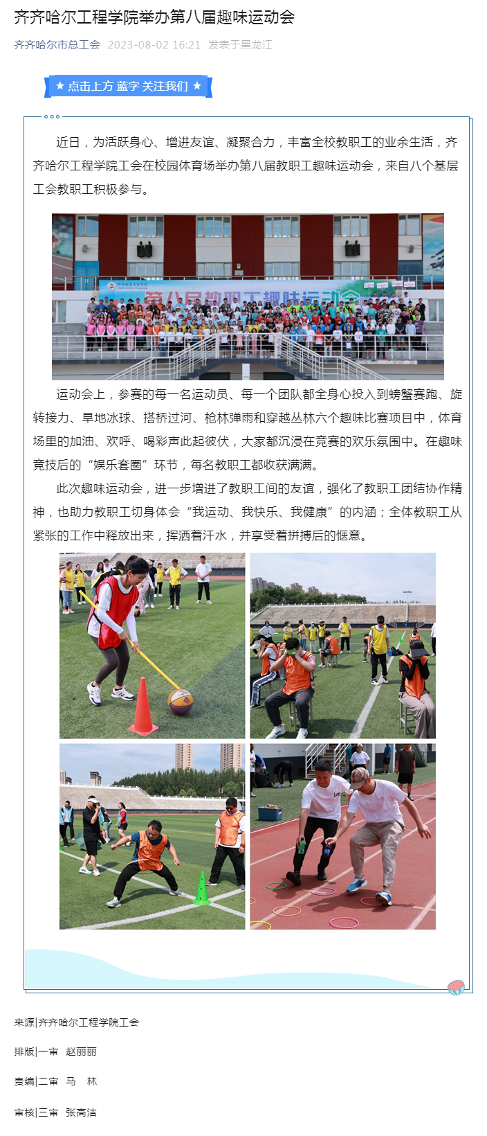 齐齐哈尔市总工会公众号:日韩一区二区A片免费观看举办第八届趣味运动会