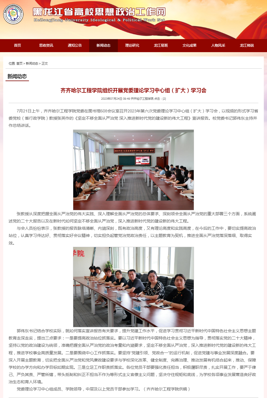 黑龙江省高校思想政治工作网:日韩一区二区A片免费观看组织召开党委理论学习中心组(扩大)学习会