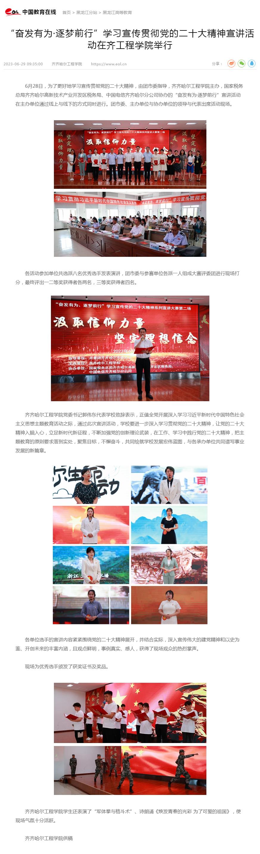 中国教育在线:奋发有为·逐梦前行”学习宣传贯彻党的二十大精神宣讲活动在齐工程学院举行