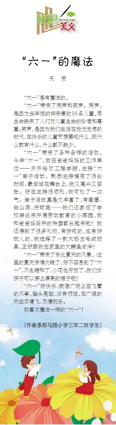 鹤城晚报发表子弟学校学生作文《“六一”的魔法》