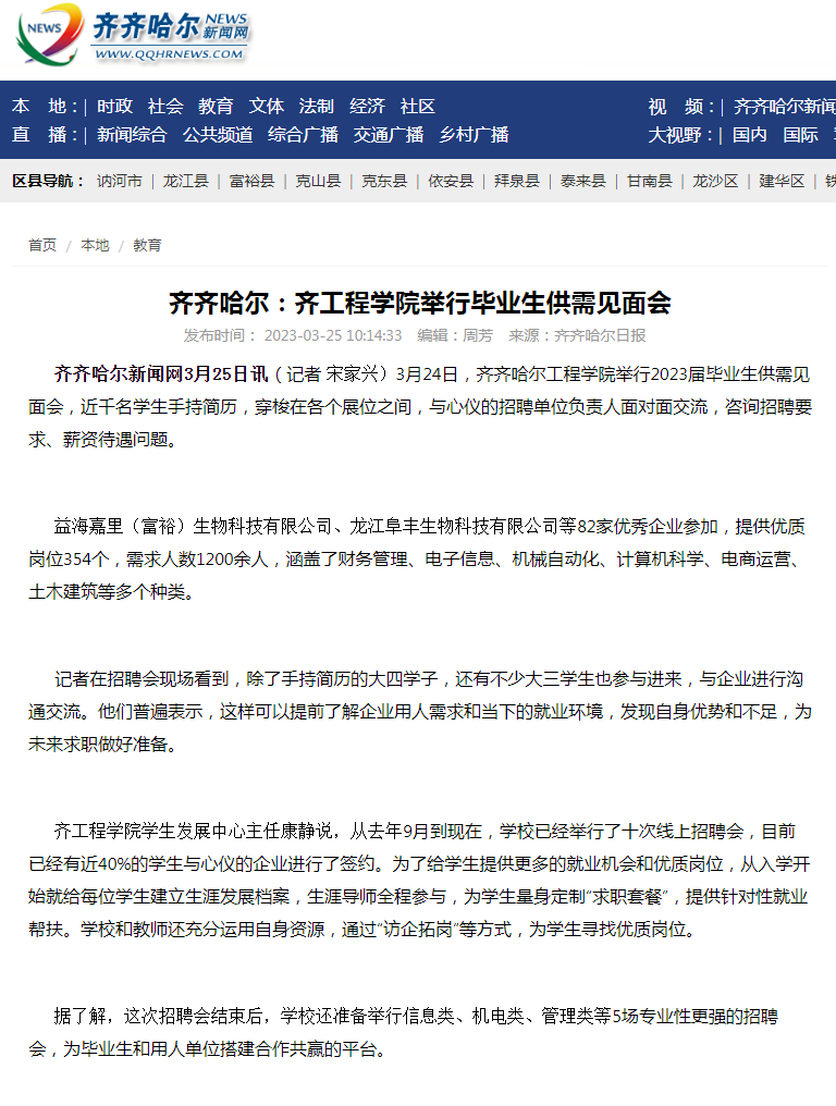 齐齐哈尔新闻网:齐工程学院举行毕业生供需见面会