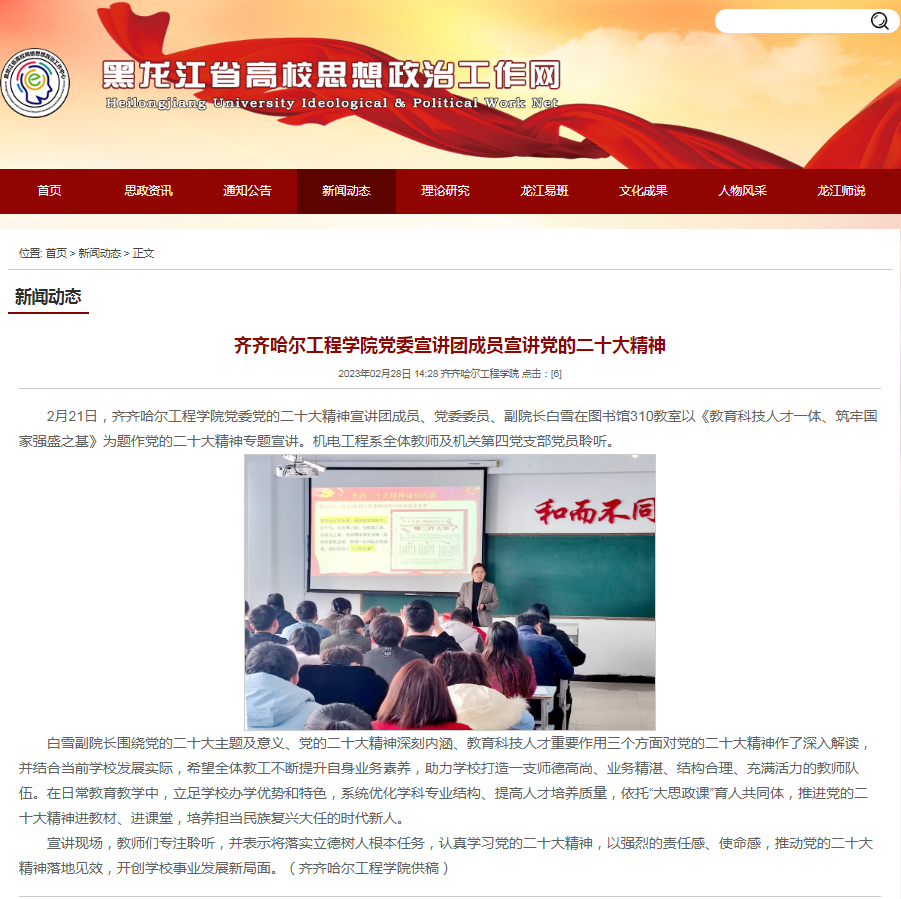 黑龙江省高校思想政治工作网:日韩一区二区A片免费观看党委宣讲团成员宣讲党的二十大精神