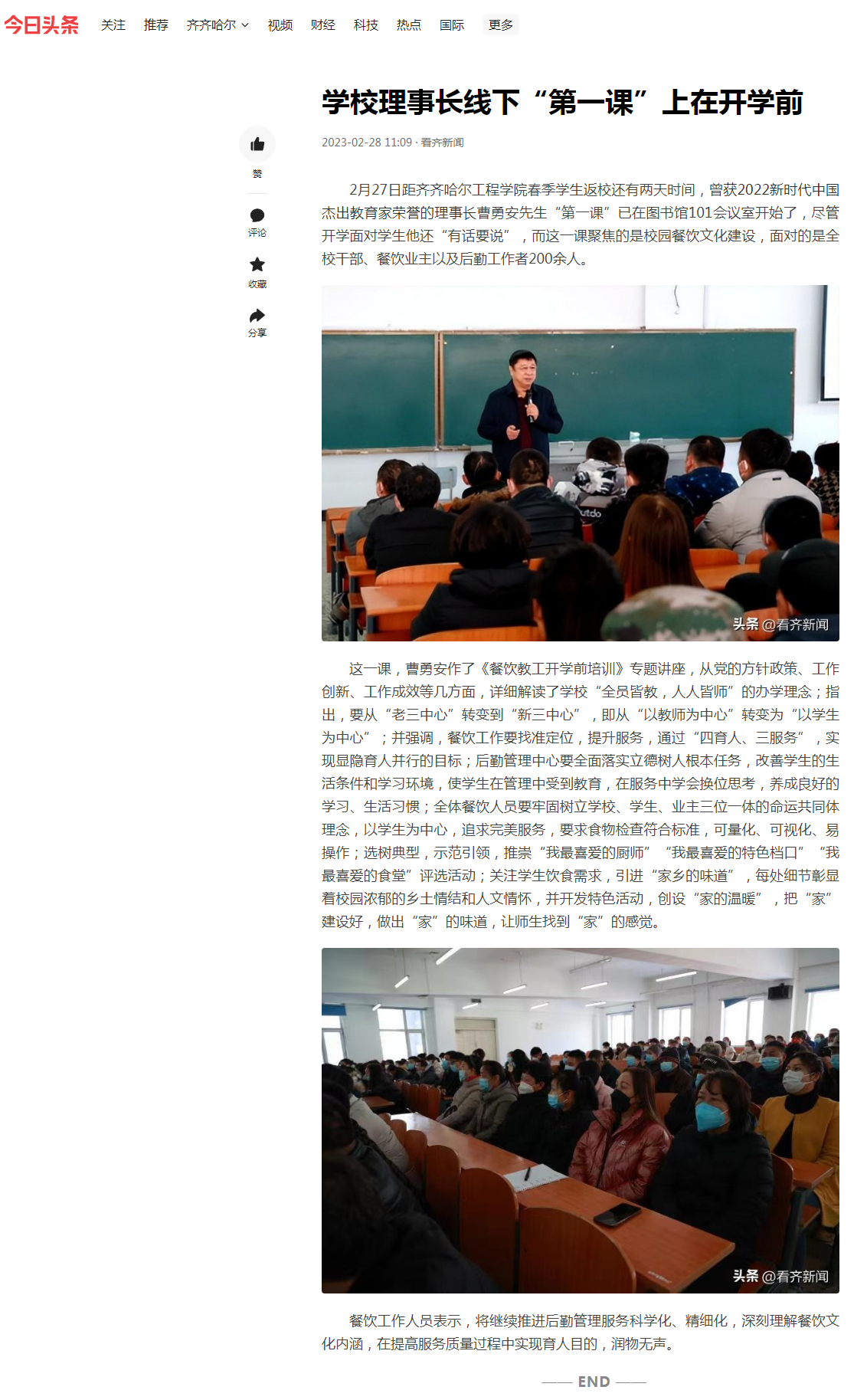 看齐今日头条:学校理事长线下“第一课”上在开学前