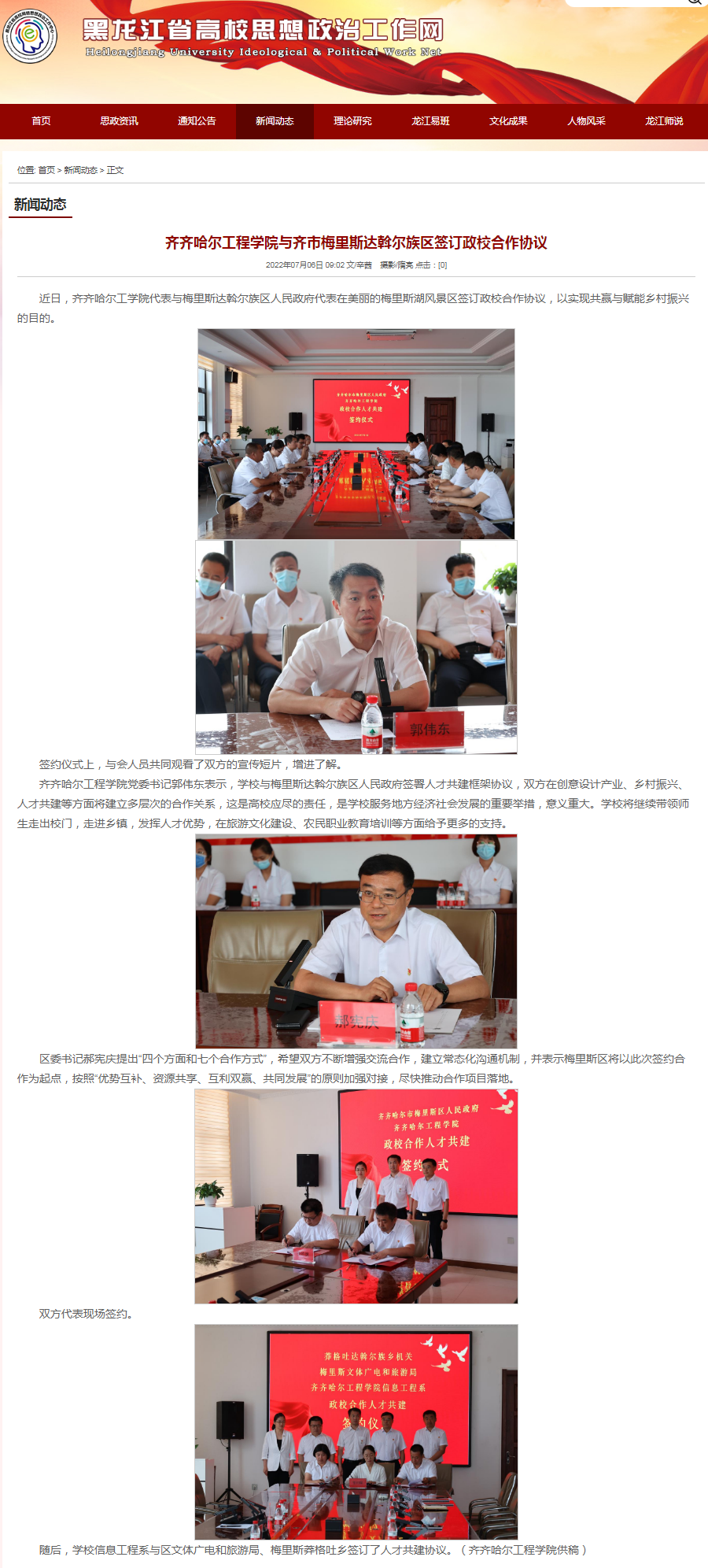 黑龙江省高校思想政治工作网:日韩一区二区A片免费观看与齐市梅里斯达斡尔族区签订政校合作协议