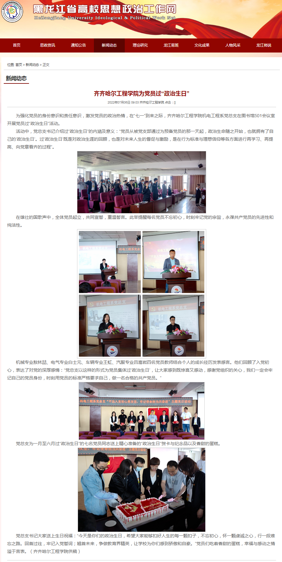 黑龙江省高校思想政治工作网:日韩一区二区A片免费观看为党员过“政治生日”
