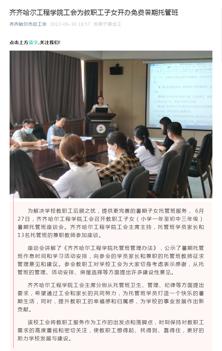齐齐哈尔市总工会:日韩一区二区A片免费观看工会为教职工子女开办免费暑期托管班