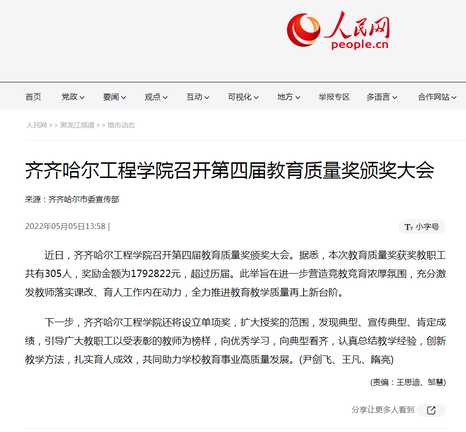 人民网:日韩一区二区A片免费观看召开第四届教育质量奖颁奖大会