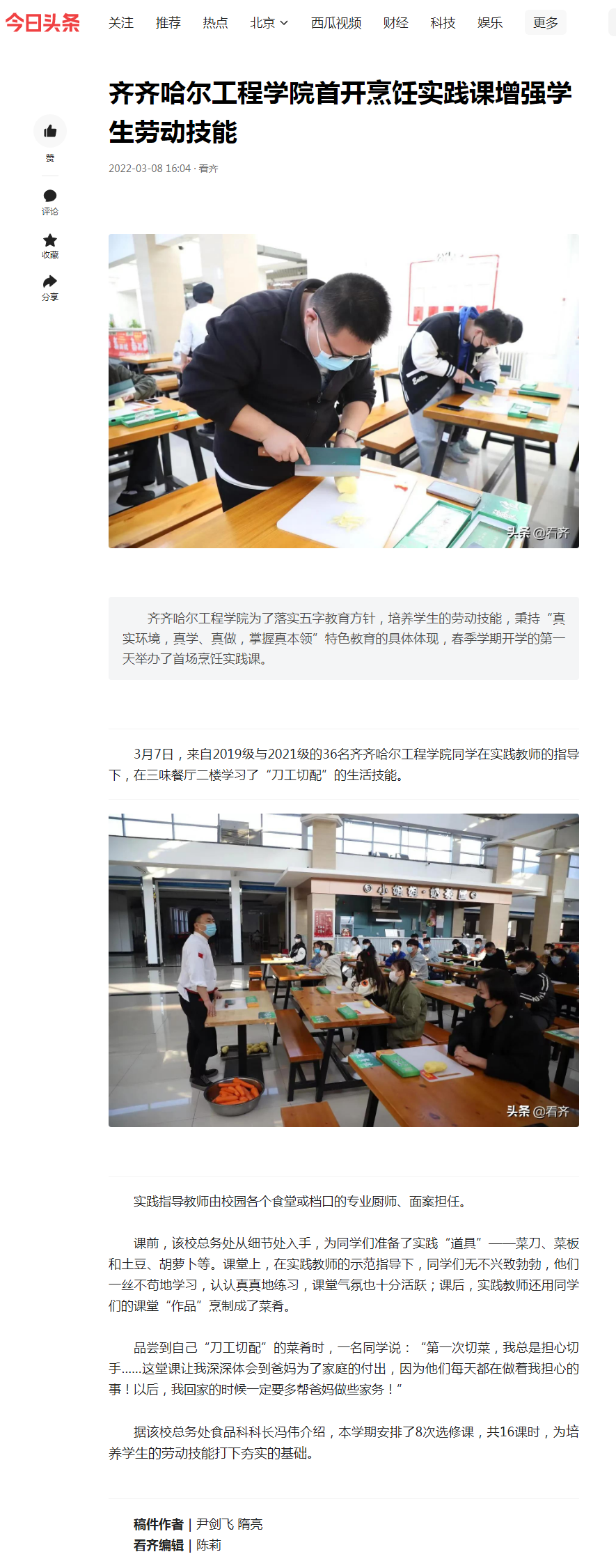 今日头条:日韩一区二区A片免费观看首开烹饪实践课增强学生劳动技能