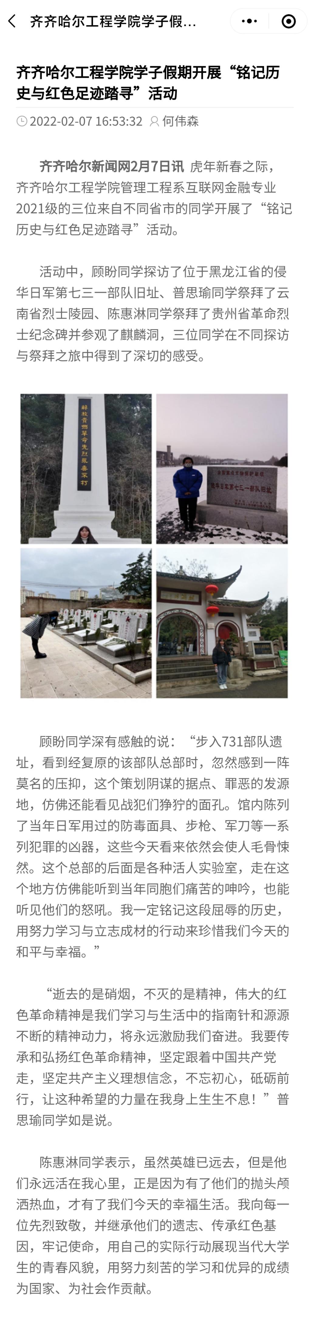 看齐▪本地新闻:日韩一区二区A片免费观看学子假期开展“铭记历史与红色足迹踏寻”活动