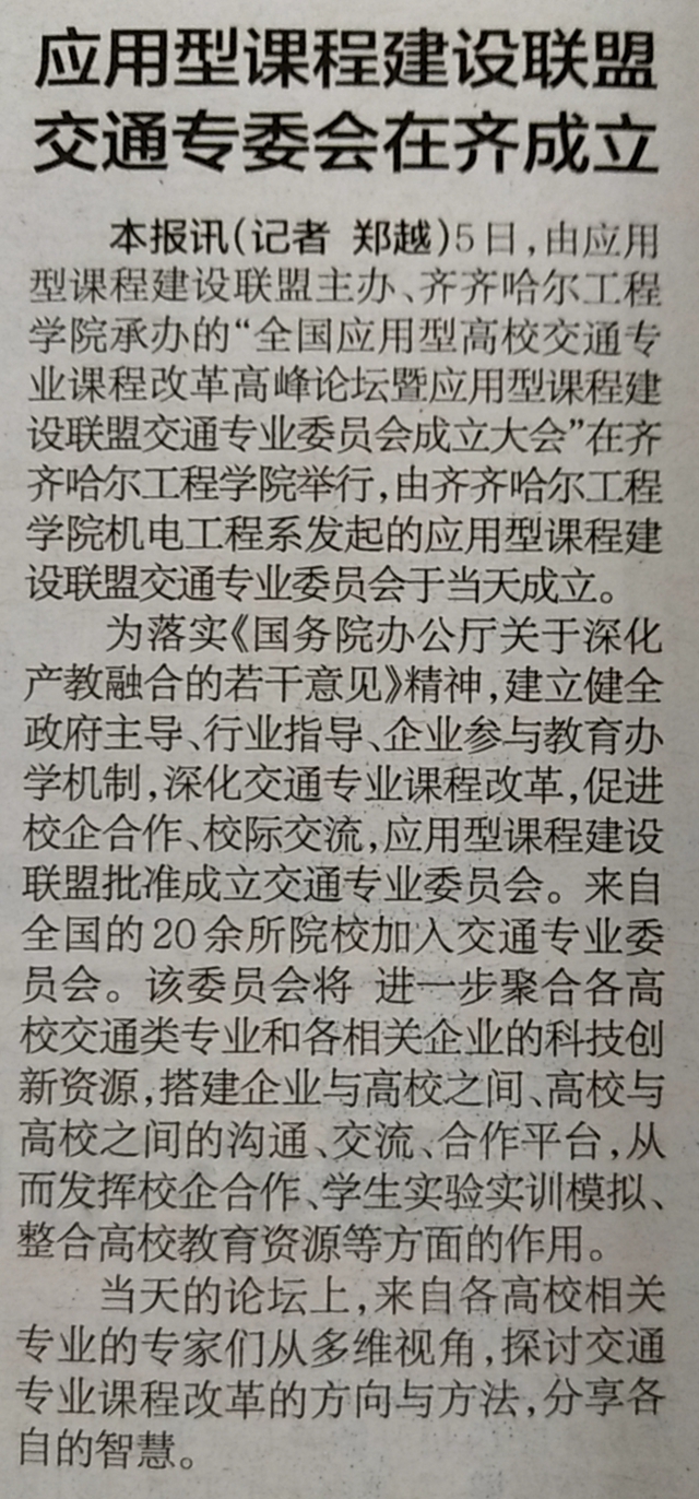 鹤城晚报:应用型课程建设联盟交通专业委员会在齐成立