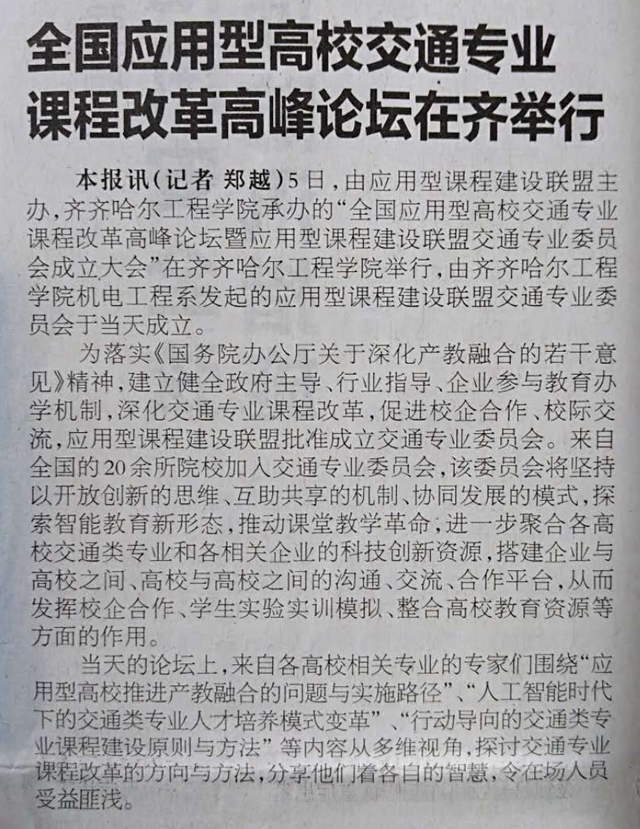 齐齐哈尔日报:全国应用型高校交通专业课程改革高峰论坛在齐举行