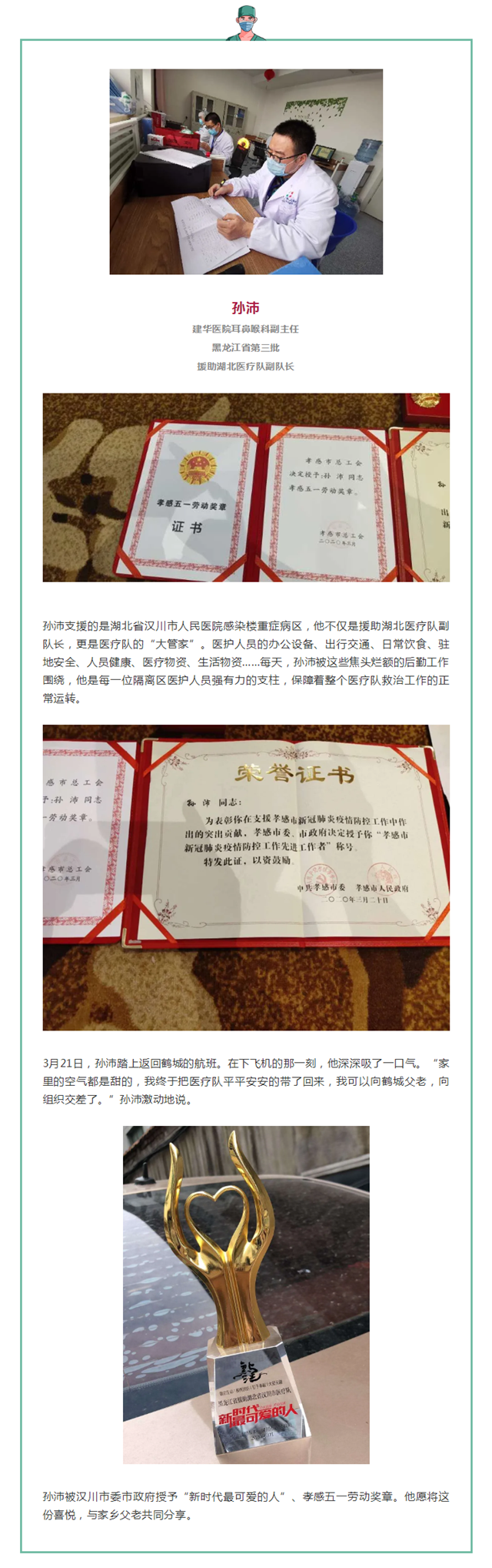 看齐报道学校附属建华医院援助湖北医疗队员的“军功章”长什么样