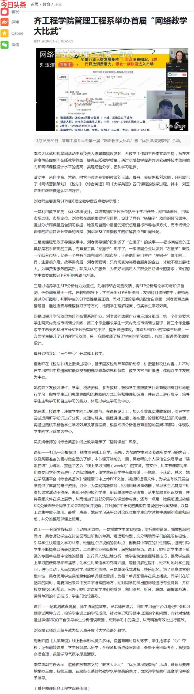 今日头条:齐工程学院管理工程系举办首届“网络教学大比武”