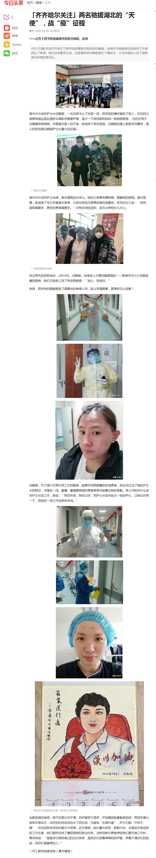 今日头条《齐齐哈尔关注》:两名驰援湖北的“天使”,战“疫”征程