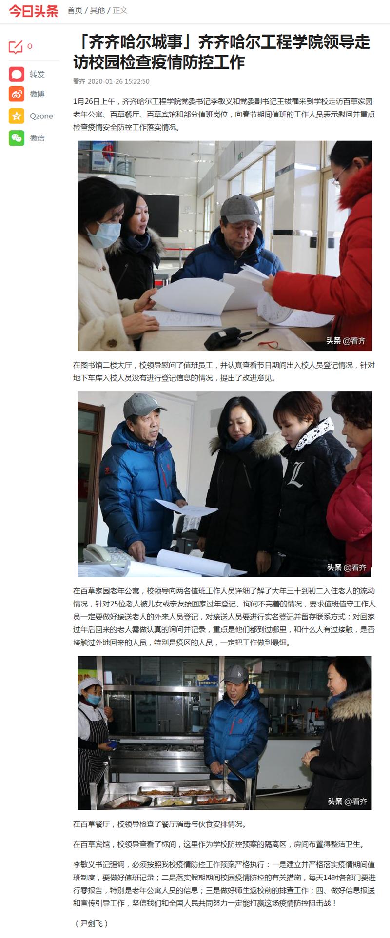 今日头条《齐齐哈尔城事》:日韩一区二区A片免费观看领导走访校园检查疫情防控工作