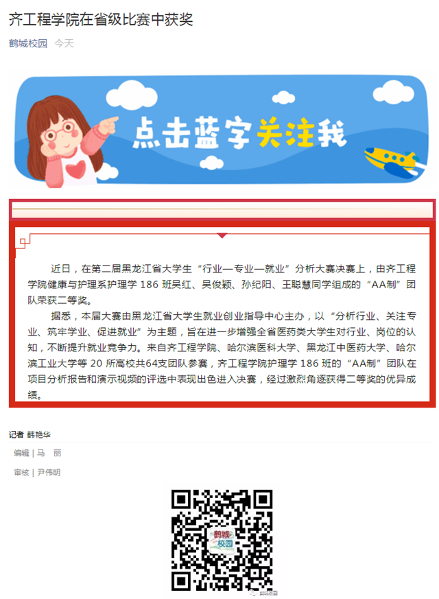 鹤城校园:齐工程学院在省级比赛中获奖