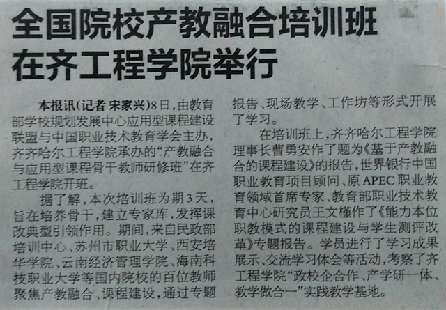 齐齐哈尔日报:全国院校产教融合培训班在齐工程学院举行