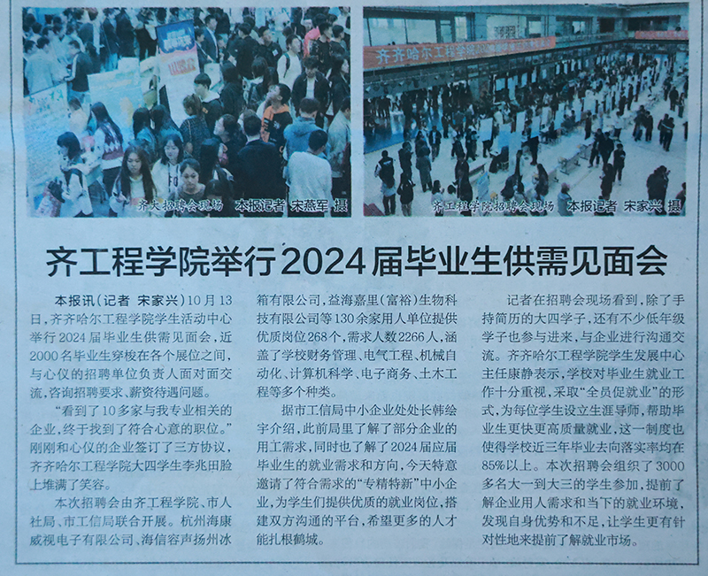鹤城晚报:齐工程学院举行2024届毕业生供需见面会