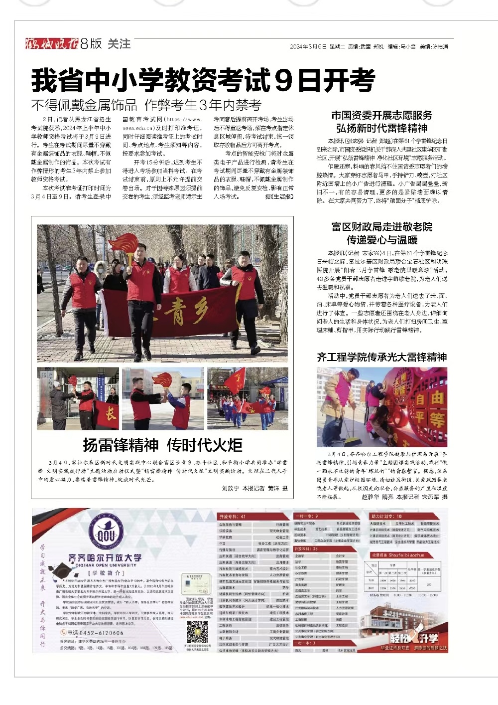 《鹤城晚报》报道齐工程学院传承光大雷锋精神图片