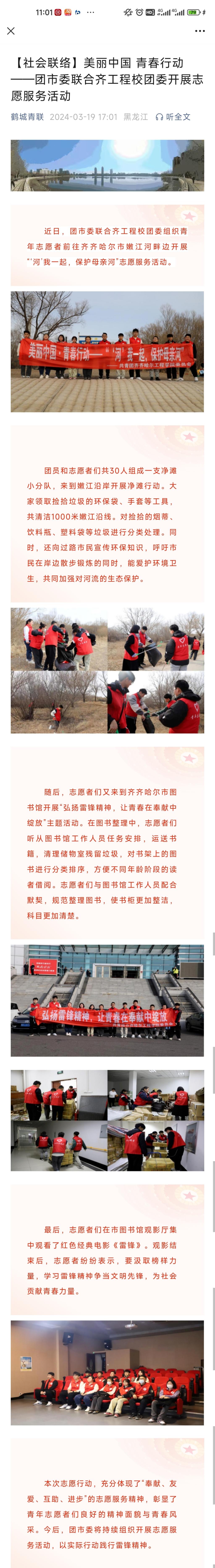 《鹤城青联》报道美丽中国 青春行动——团市委联合齐工程校团委开展志愿服务活动