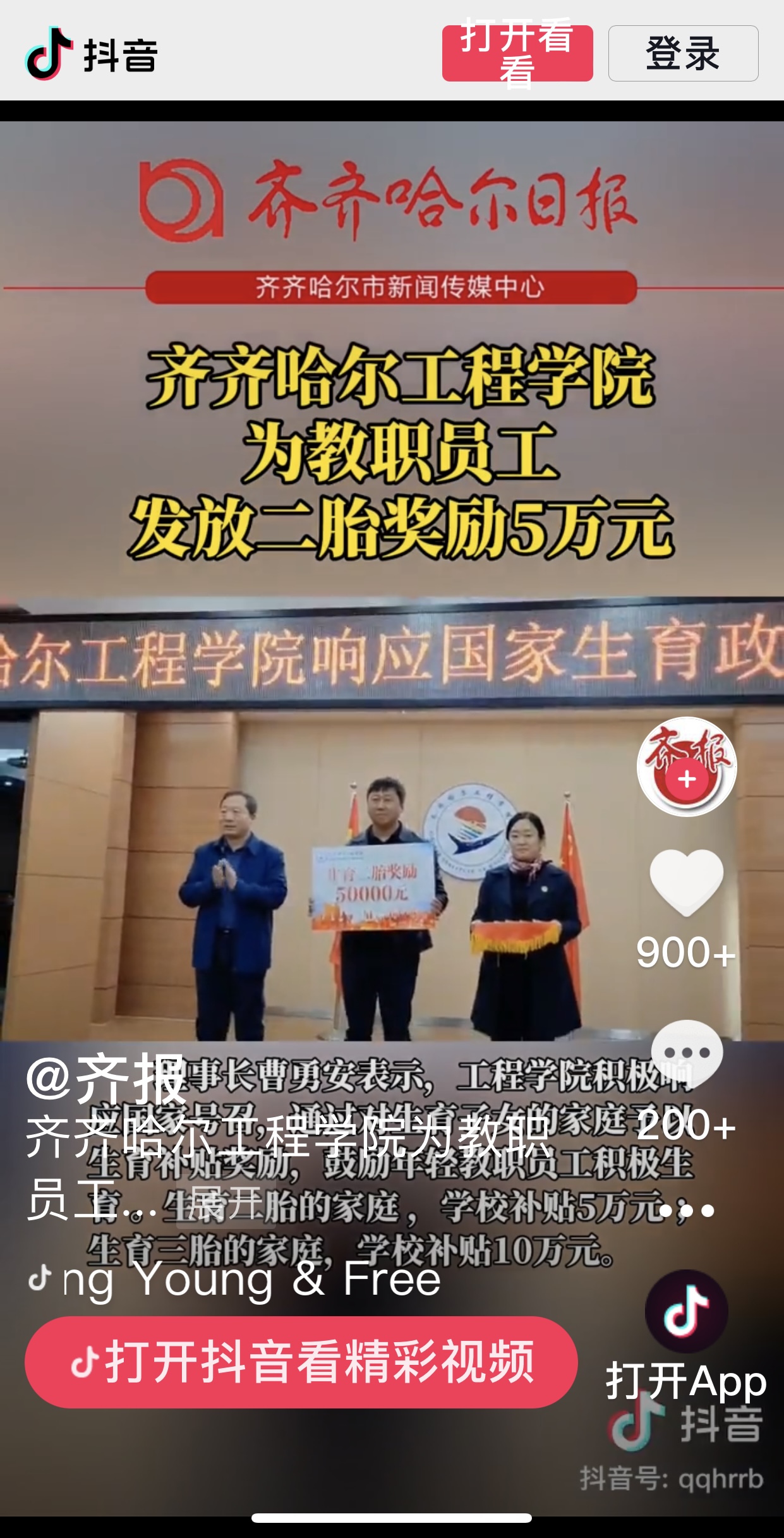 《抖音.齐报》播出日韩一区二区A片免费观看为教职员工发放二胎奖励5万元视频