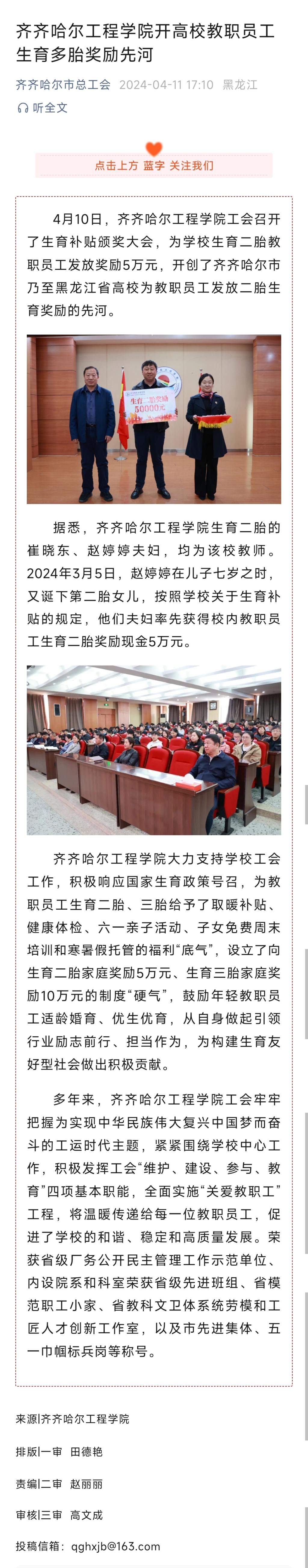 《齐齐哈尔市总工会》发表日韩一区二区A片免费观看开高校教职员工生育多胎奖励先河