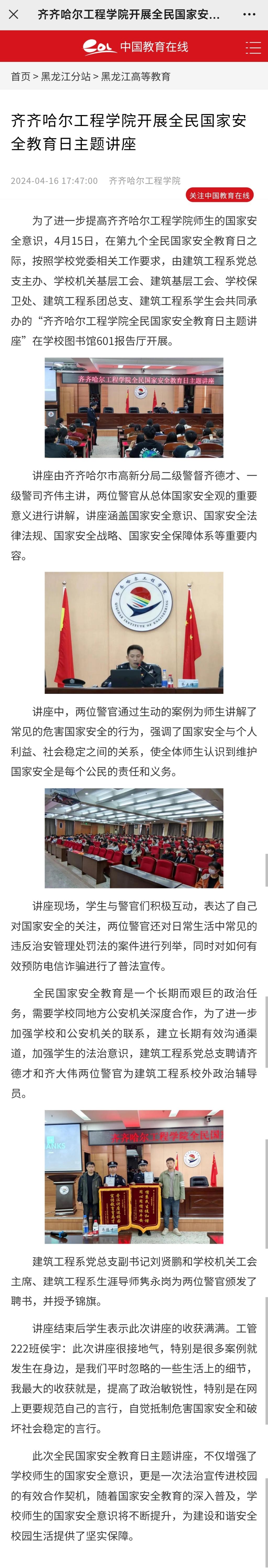 《中国教育在线》发表日韩一区二区A片免费观看开展全民国家安全教育日主题讲座