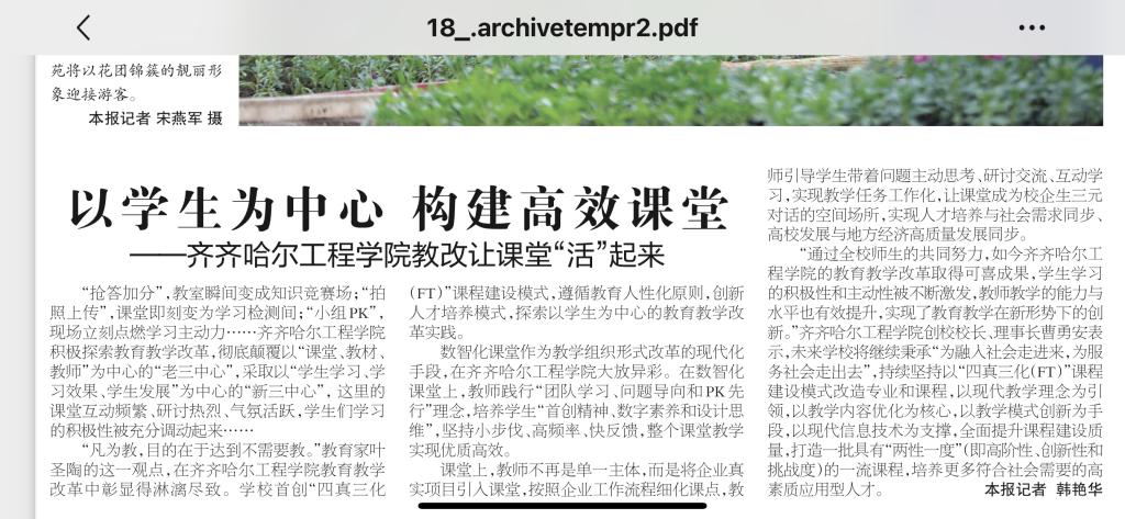 《齐齐哈尔日报》报道以学生为中心 构建高效课堂——日韩一区二区A片免费观看教改让课堂“活”起来
