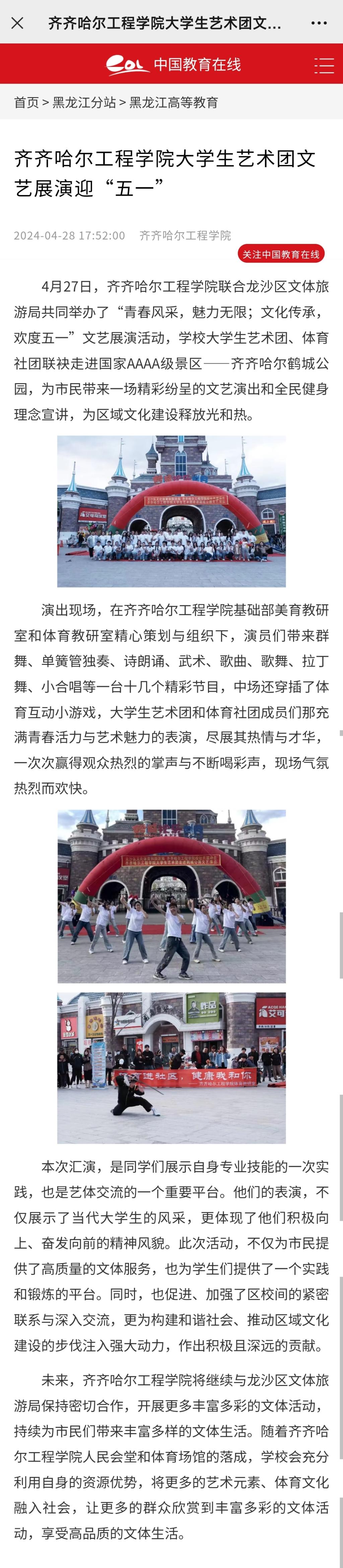 《中国教育在线》报道日韩一区二区A片免费观看大学生艺术团文艺展演迎“五一”