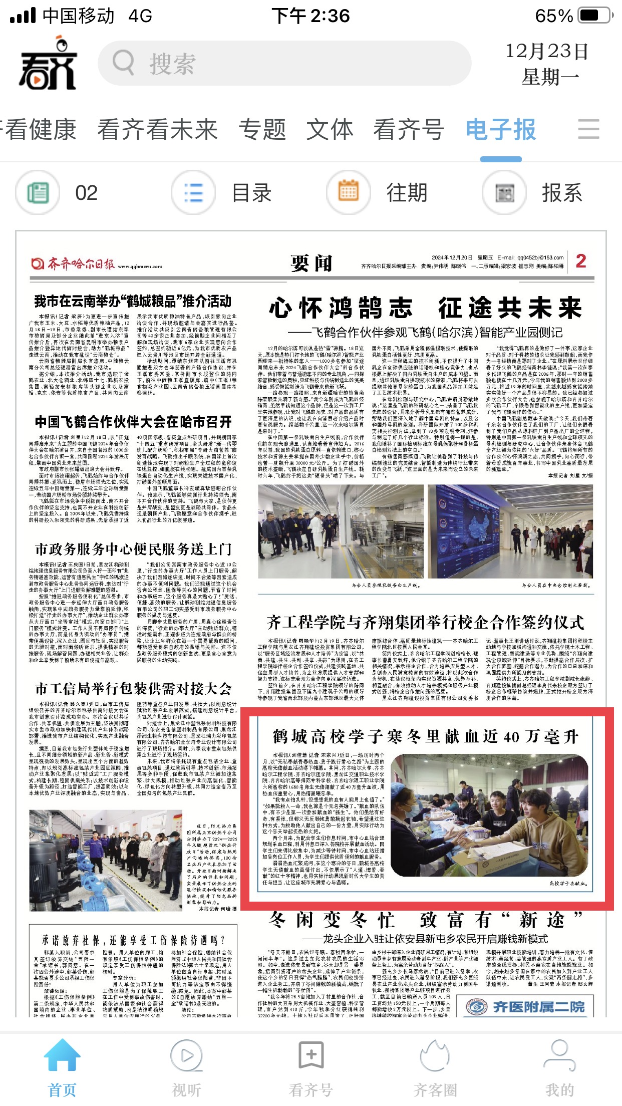 《齐齐哈尔日报》鹤城高校学子寒冬里献血近40万毫升