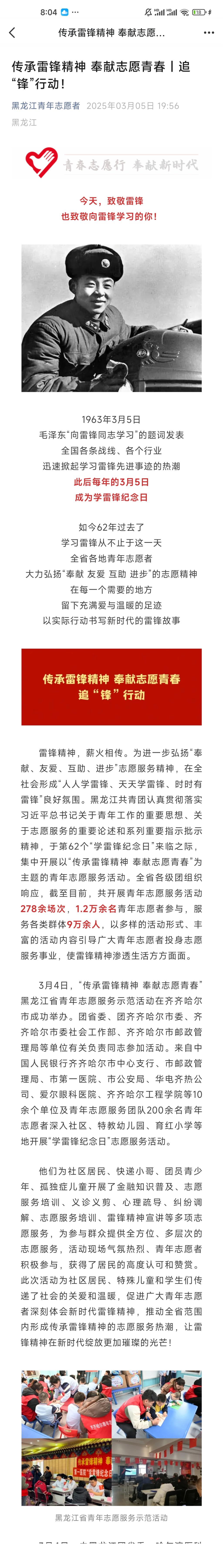 《黑龙江青年志愿者》传承雷锋精神 奉献志愿青春|追“锋”行动!