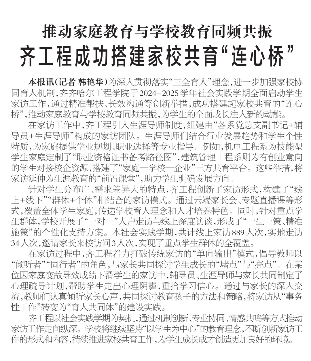 《齐齐哈尔日报》齐工程成功搭建家校共育“连心桥”