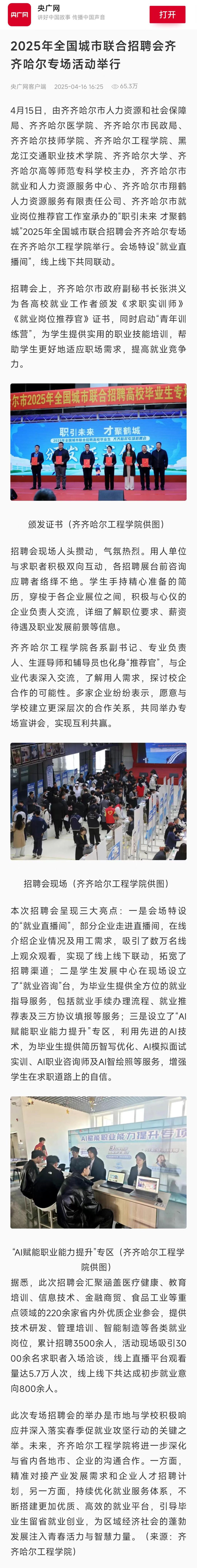 《央广网》2025年全国城市联合招聘会齐齐哈尔专场活动举行