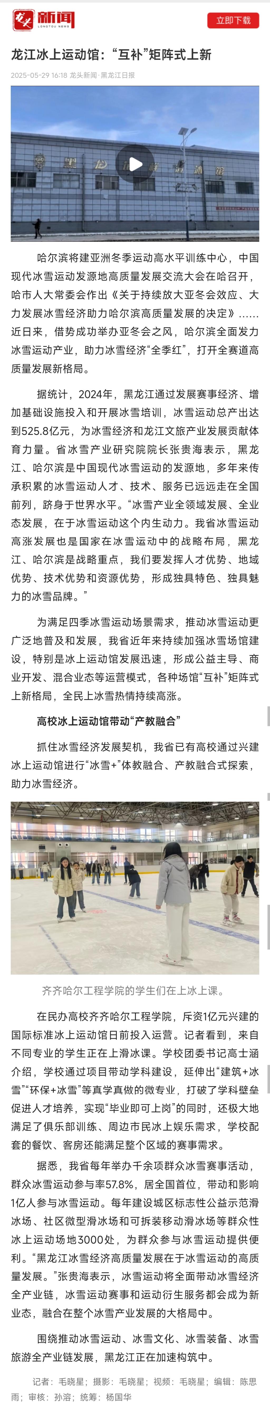 《龙头新闻》龙江冰上运动馆:“互补”矩阵式上新