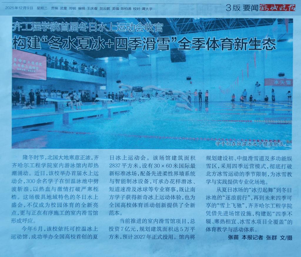 《鹤城晚报》齐工程学院首届冬日水上运动会收官