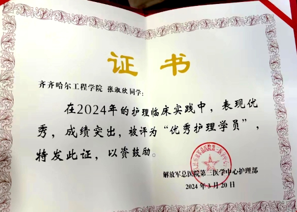 在中国人民解放军总医院第三医学中心实习的护理学205班王萌萌、202班谯立志、203班张淑欣三名学生荣获“优秀护理学员”荣誉称号;护理学202班谯立志、204班葛世华、203班周雯慧和张淑欣四名学生被该医院录用。