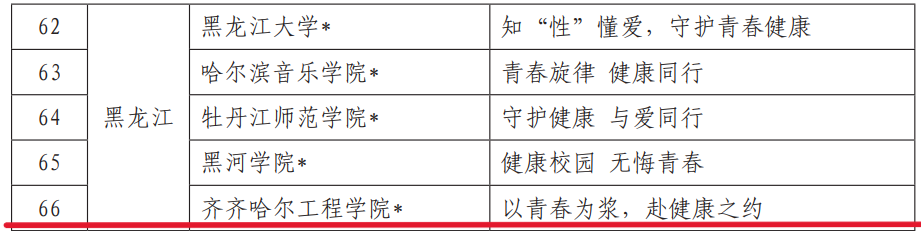我校实施青春健康高校项目成效显著。学校历来高度重视青年大学生身心健康教育工作。2020年我校被黑龙江省青春健康高校项目点,大力普及健康知识、促进大学生健康行为习惯养成,有效促进了平安校园和精神文明建设。