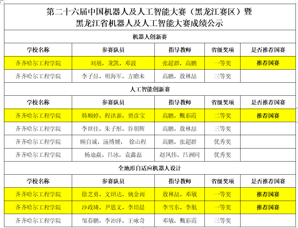 7月2日,第二十六届中国机器人及人工智能大赛(黑龙江赛区)暨第七届黑龙江省机器人及人工智能大赛比赛结果公布:我校机电工程系学生共斩获一等奖3项、二等奖1项、三等奖3项、优秀奖2项。