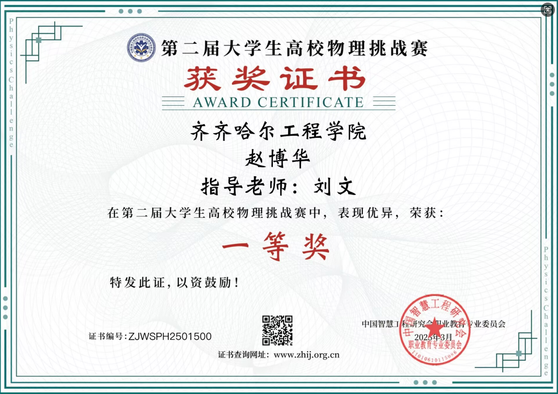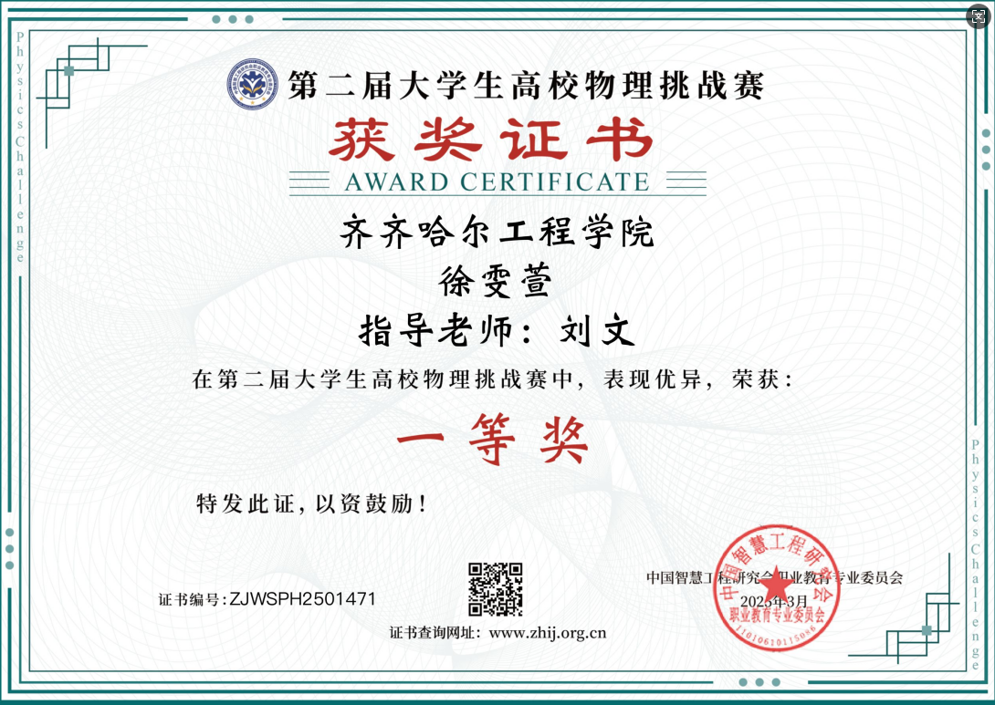 本次竞赛由中国智慧工程研究会职业教育专业委员会主办,吸引了全国各地多所高校学生积极参与。在接到赛事通知后,学校大学物理教研室非常重视,赛前精心筹备,选拔优秀学生参赛,并安排教师进行针对性辅导。比赛中,面对复杂的物理问题,参赛学生凭借扎实的物理知识和出色的逻辑思维,沉着应对,最终取得好成绩。