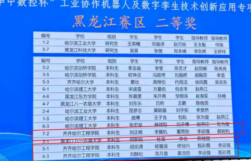 近日,在第18届全国三维数字化创新设计大赛“华中数控杯”工业协作机器人及数字孪生技术创新应用专项赛黑龙江省赛中,我校亚洲精品国产av影院机械专业5支参赛队伍取得优异成绩,共斩获二等奖3项、三等奖2项,实现参赛队伍全员获奖,创下我校参加该项赛事以来的最佳成绩和最高获奖率。