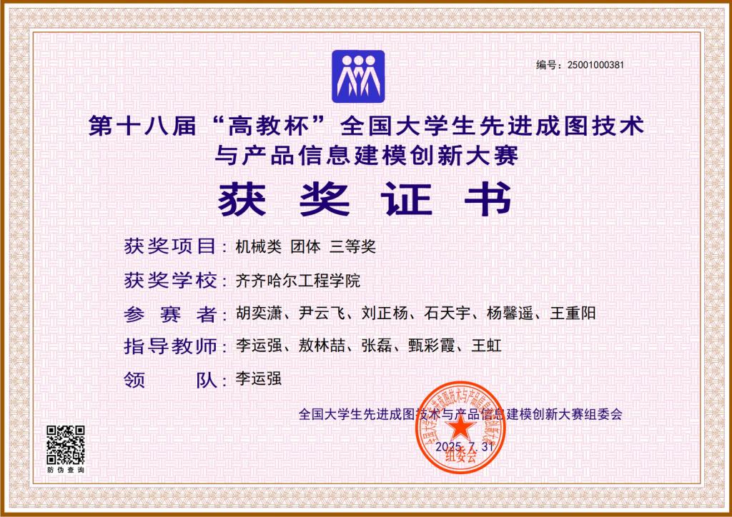 此次比赛的优异成果,充分彰显了我校在工程图学教育及创新人才培养方面所取得的扎实成效,不仅体现了学生的专业基础与创新能力,也为学校相关专业的建设与发展注入了新的活力,为进一步培养具有创新精神和实践能力的高素质工程技术人才奠定了坚实基础。